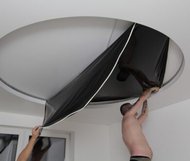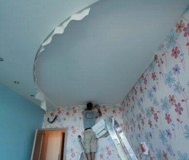 Установка натяжного потолка в гостиной